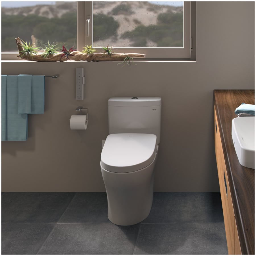 Aquia IV 0.9 / 1.28 GPF Dual Flush One Piece Elongated Toilet with Push Button Flush – Less Bidet Seat