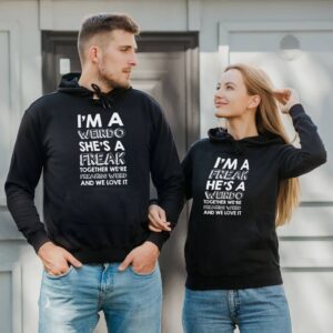 That’s when we discovered the world of custom couple hoodies — where you can personalize everything from names to graphics, choose color schemes, and even coordinate quotes that make sense when standing next to each other.